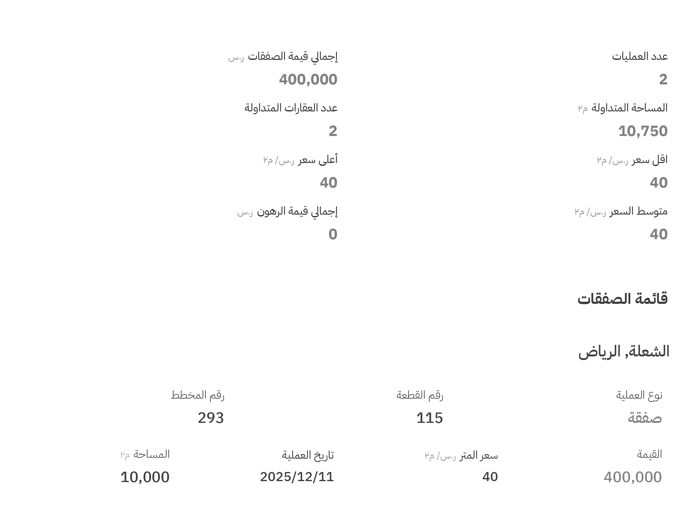 فيما سجلت مخططات شرق الرياض صفقة عقارية واحدة في ذلك اليوم، وفقًا لـ البورصة العقارية.