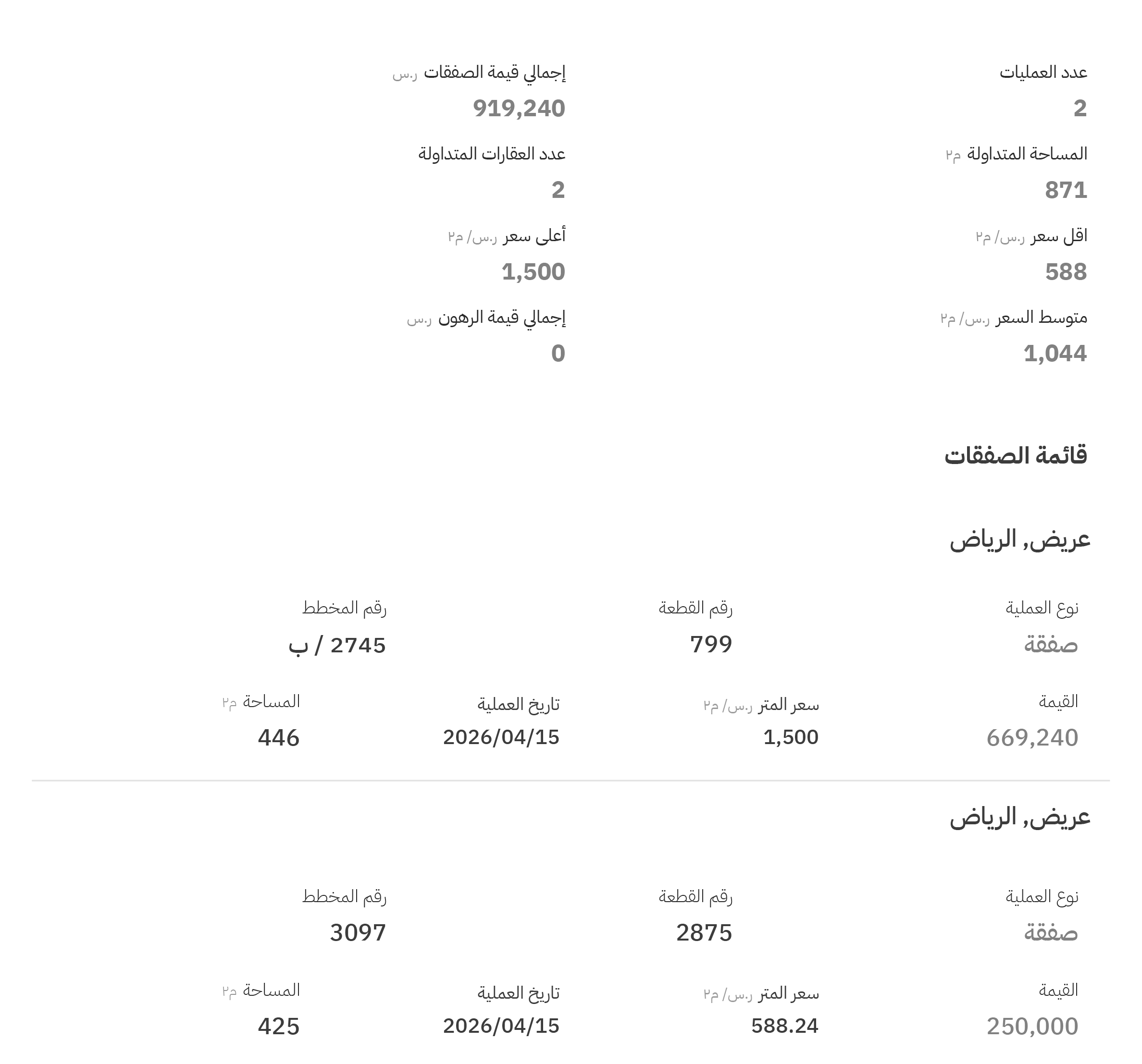 صفقتان عقاريتان في مخططات عريض أمس الأربعاء وفقًا لـ البورصة العقارية