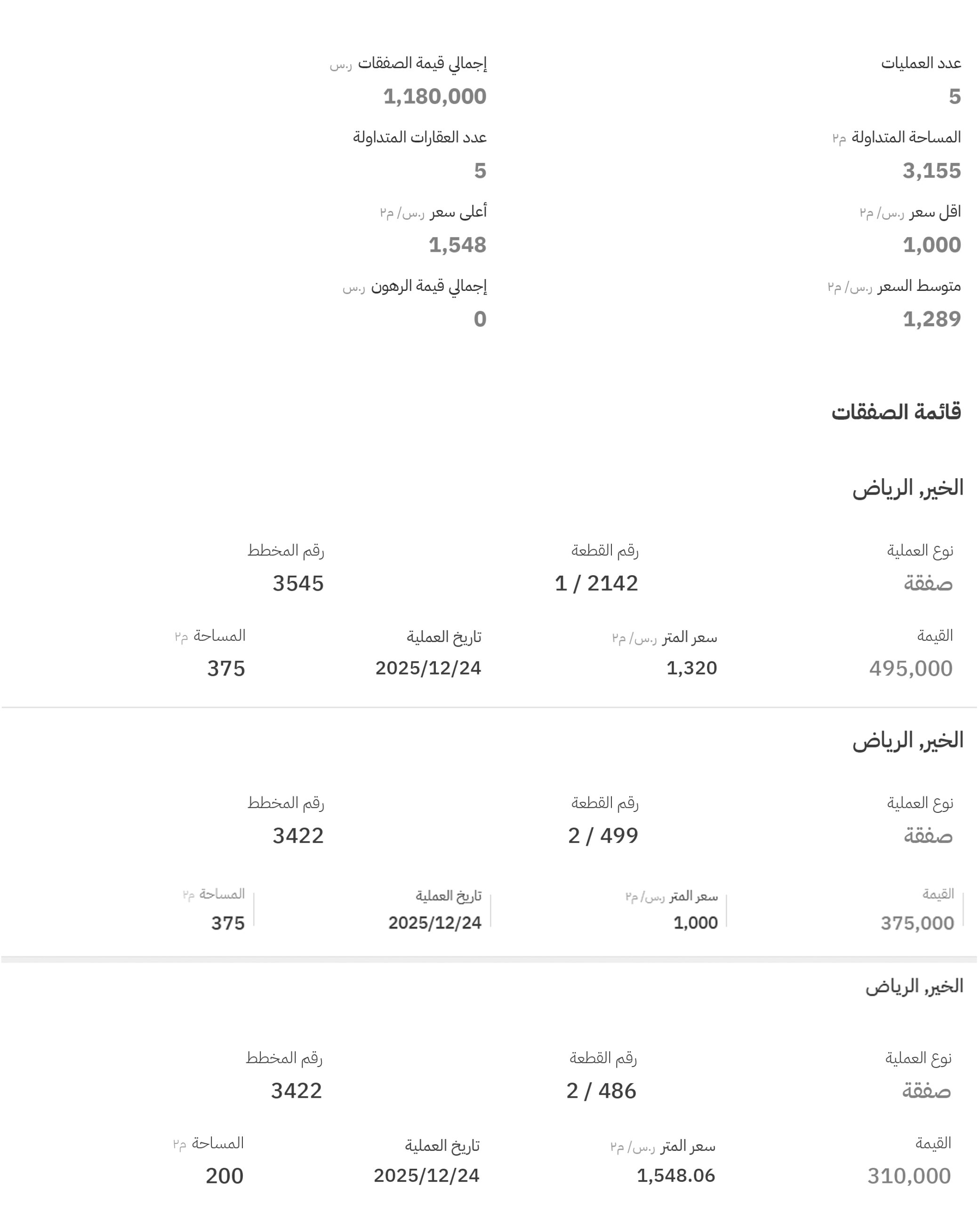 أما مخططات الخير فقد سجلت 3 صفقات عقارية، جاءت بياناتها وفق الترتيب التالي: