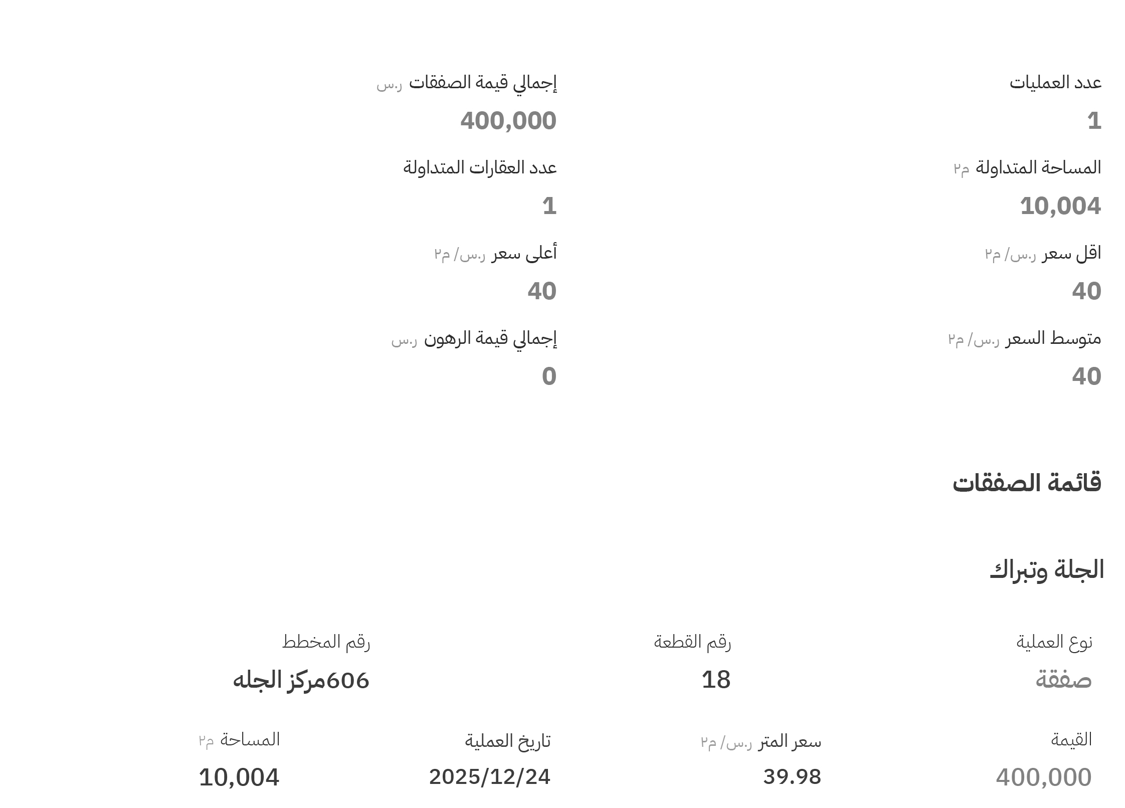 وأسفرت حركة التداول في مخططات المزاحمية عن تنفيذ 3 صفقات، حيث جاء ترتيب أعلى ثلاث منها على النحو التالي: