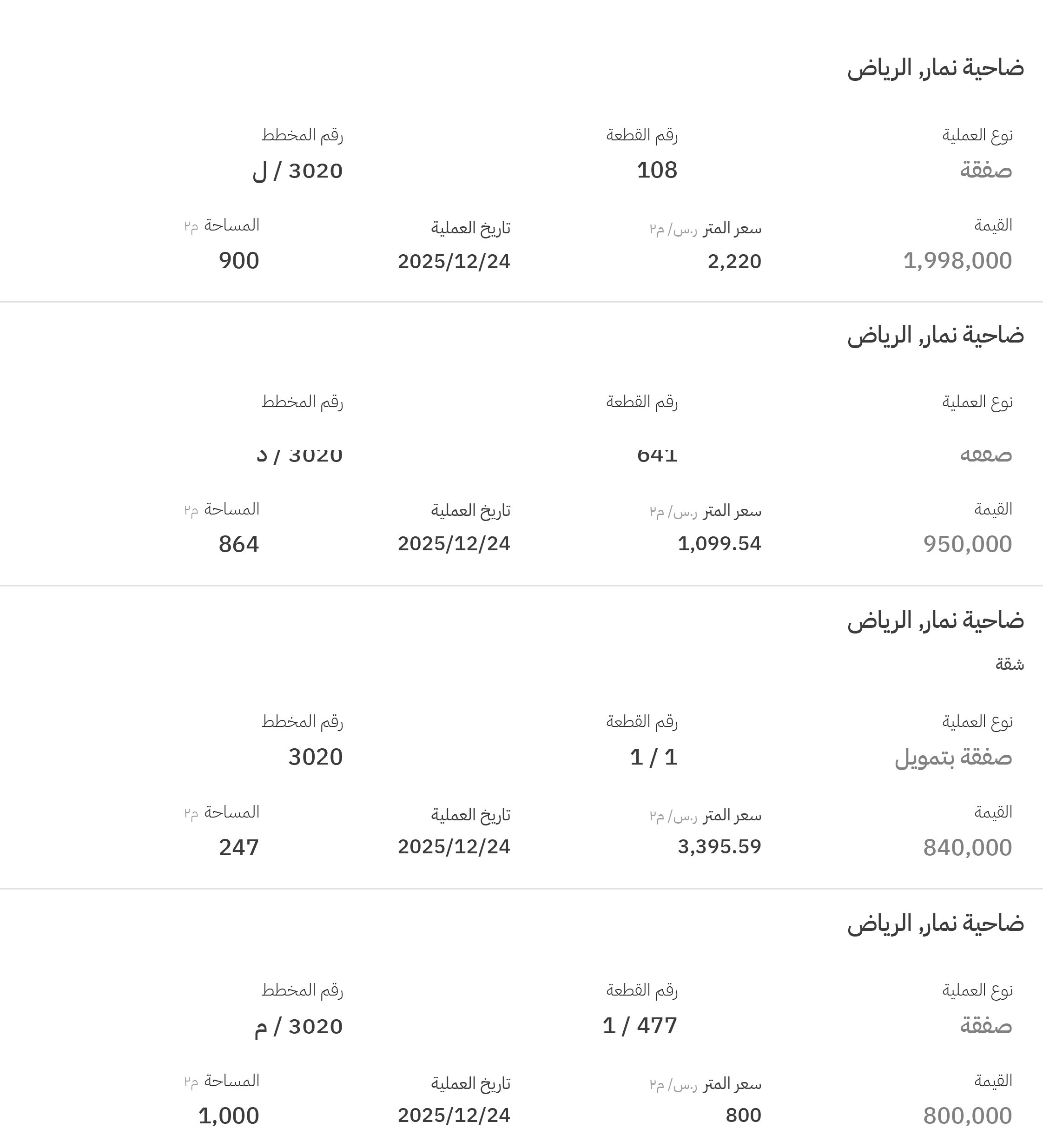 شهدت مخططات حي عريض تنفيذ 4 صفقات، وجاء ترتيب أعلى ثلاث منها وفق الترتيب التالي: