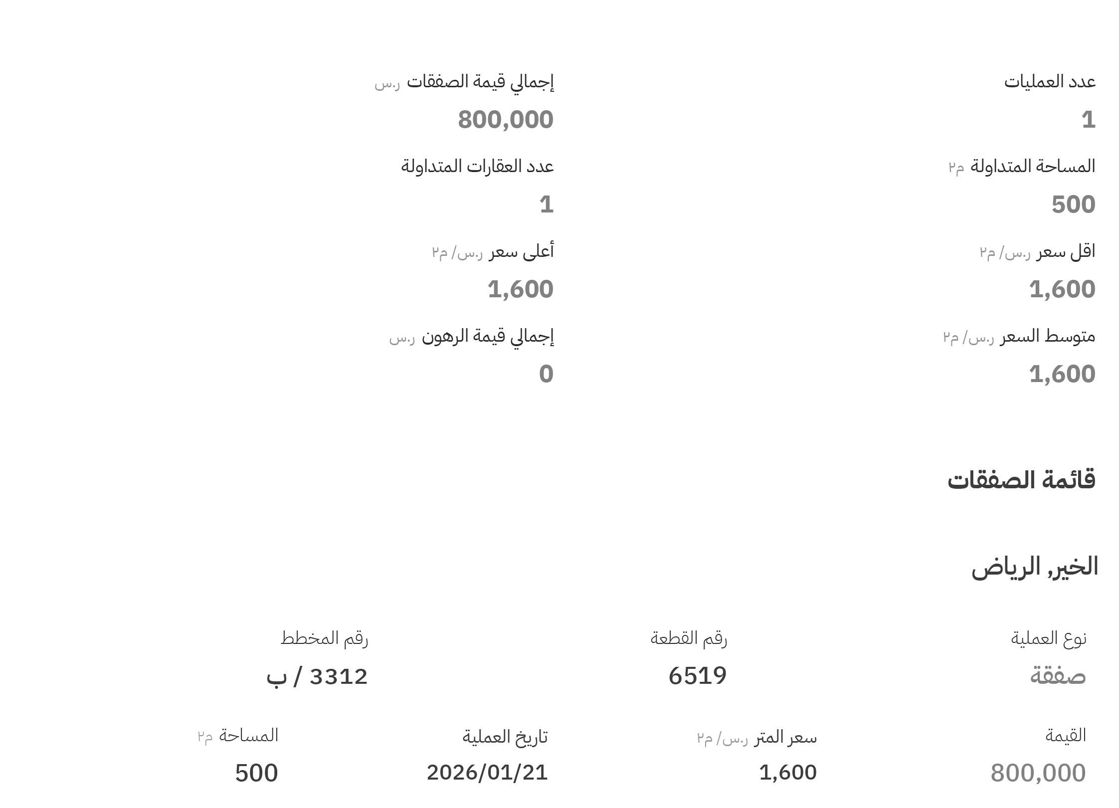 وحققت مخططات الخير تنفيذ صفقة عقارية واحدة، وجاءت بياناتها على النحو التالي: