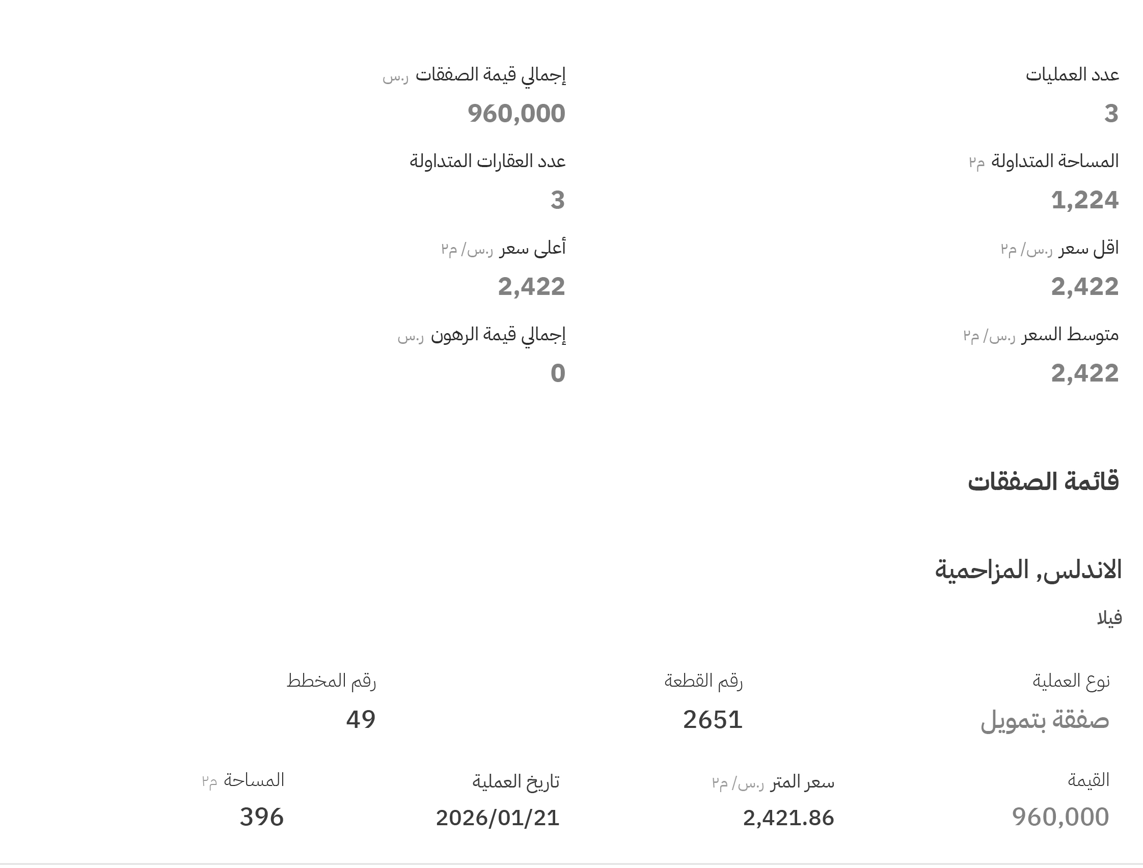 حقق المخطط رقم (49)، القطعة رقم (2651)، أعلى سعر للمتر المربع عند 2422 ريالاً (فيلا).