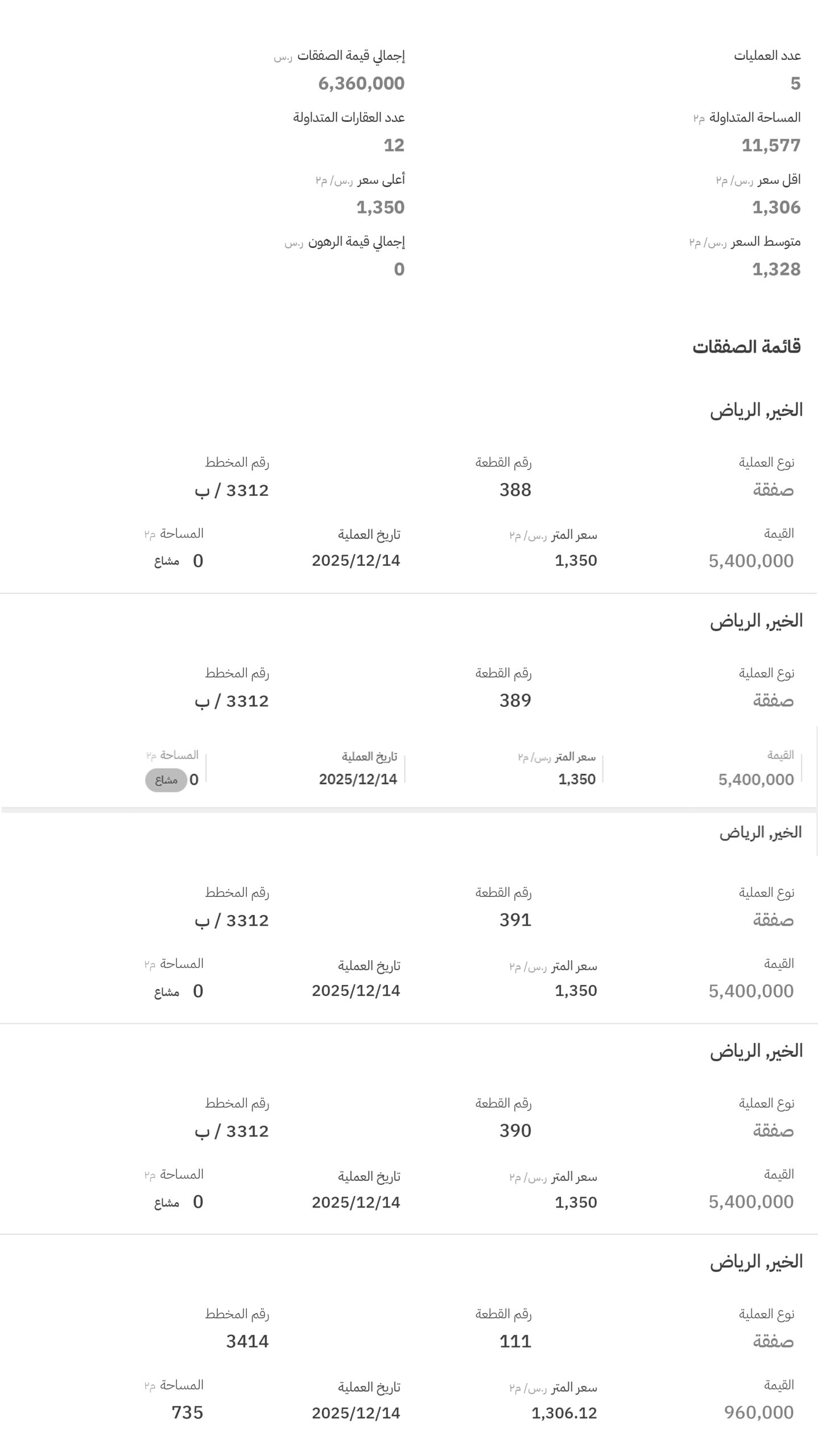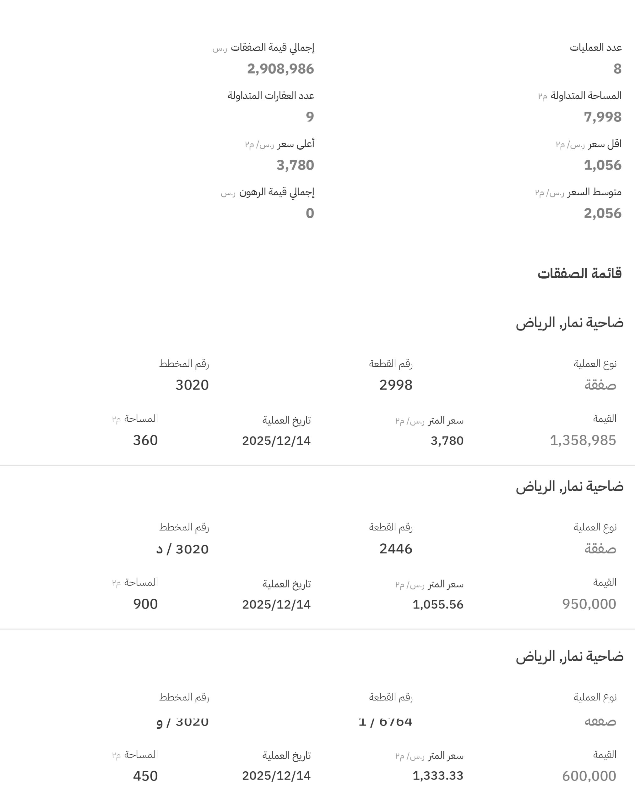 شهدت مخططات حي عريض تنفيذ 3 صفقات عقارية، جاءت أعلى ثلاث منها وفق الترتيب التالي: