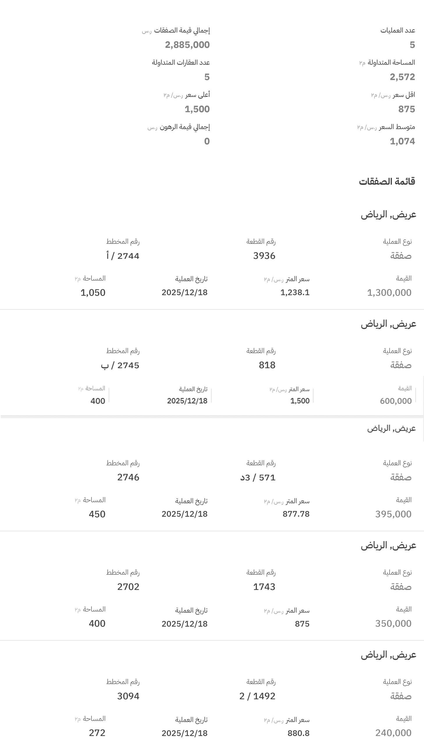 سجّل المخطط رقم (2745 / ب)، القطعة رقم (818)، أعلى سعر للمتر المربع عند 1500 ريال.