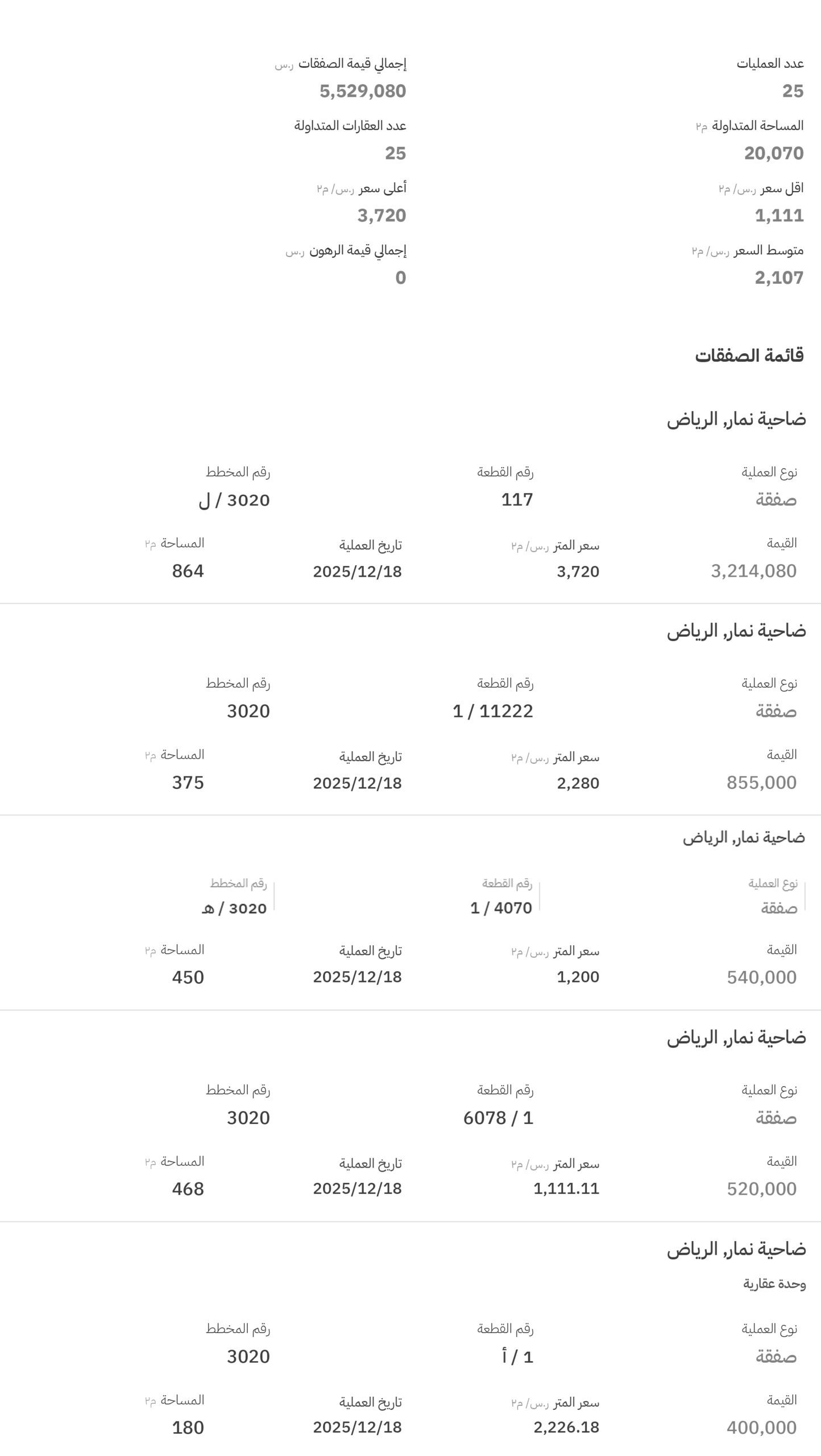 شهدت مخططات حي عريض تنفيذ 5 صفقات، وجاء ترتيب أعلى ثلاث منها وفق الترتيب التالي: